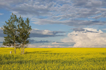 I’ve seen many photos and paintings of fields of yellow canola against a strong blue prairie sky. But what really attracted me to this image was the stand of trees to the left. I also liked the green shapes threading through the field in the foreground, and the clouds in the lower part of the sky.