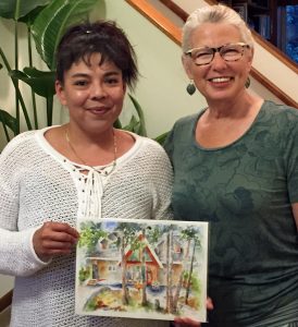 The temperature was hot (35C), and the enthusiasm was high for the Ink & Watercolor Workshops that I delivered through Black Spruce Gallery in early August.