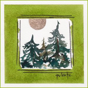 5″ x 5″ original watercolor on paper. Mounted on 6″ x 6″ mat board.