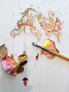 Once the foil is adhered, you complete the rest of the painting in the normal way. In my case, this involved ink and watercolor.